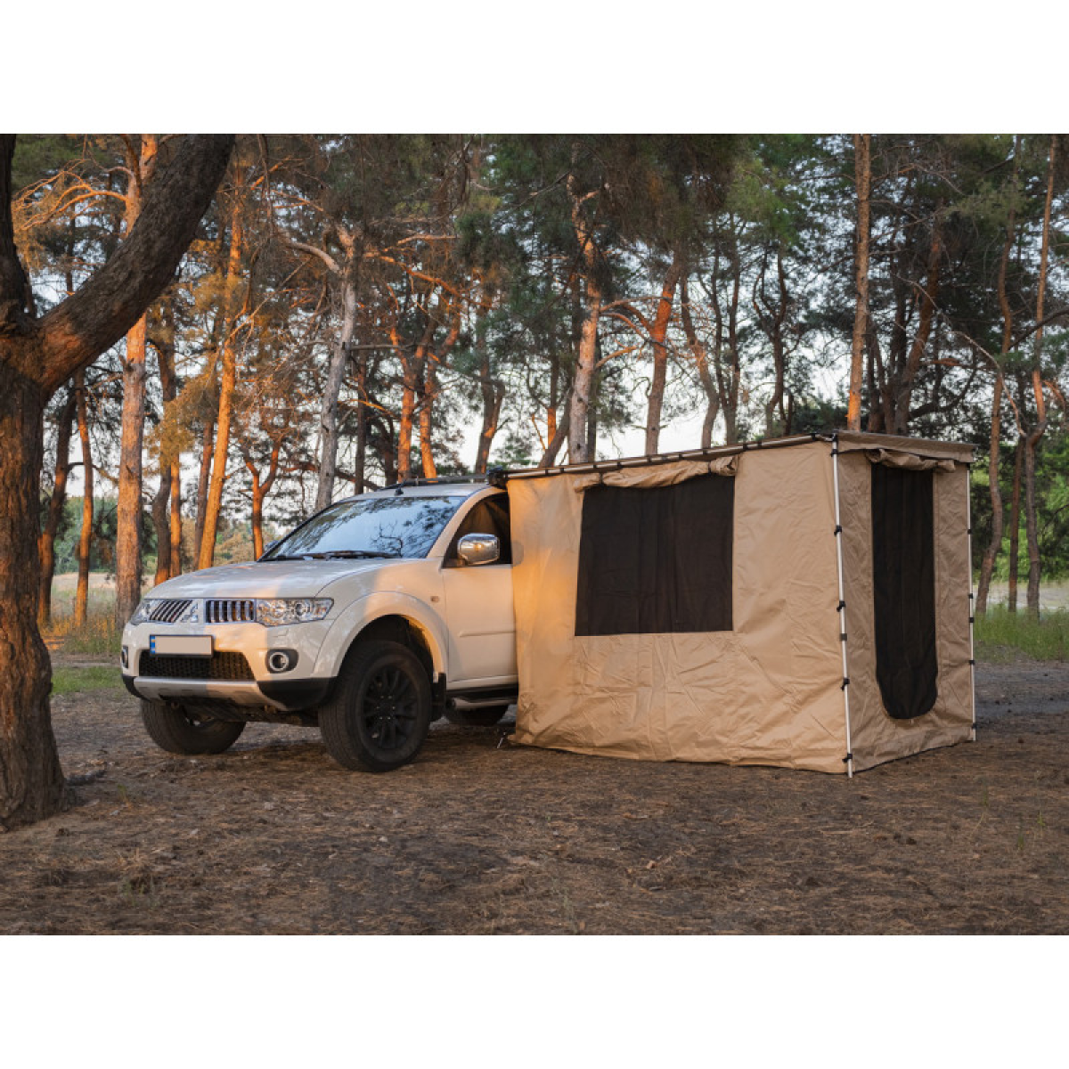 Комплект автомобільної маркізи ORPRO 2х2.5м з бічною стінкою і кімнатою - це зручний і корисний аксесуар для мандрівників, любителів відпочинку на природі з сім“єю, для рибалок і мисливців. Завдяки універсальності комплекту, можна використовувати тент з бічною стінкою, або ж перетворити його на повноцінну кімнату-прибудову.