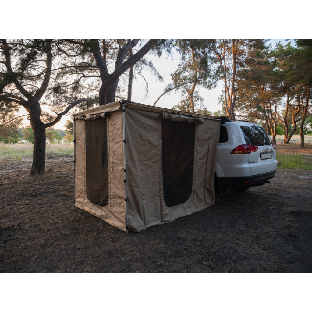Разом з маркізою, в комплекті поставляється кімната ORPRO 2х2.5м з міцної тканини Oxford 420D Ripstop. Даний аксесуар перетворить звичайний навіс в повноцінне приміщення з вікнами і дверима, де зможе розміститися велика компанія в будь-яку погоду, в будь-якому місці і на будь-який час.