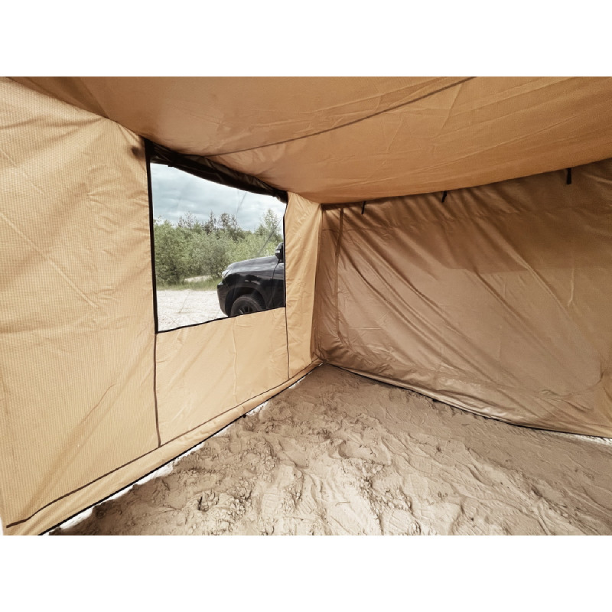 Разом з маркізою, в комплекті поставляється кімната ORPRO 2х2.5м з міцної тканини Oxford 420D Ripstop. Даний аксесуар перетворить звичайний навіс в повноцінне приміщення з вікнами і дверима, де зможе розміститися велика компанія в будь-яку погоду, в будь-якому місці і на будь-який час.