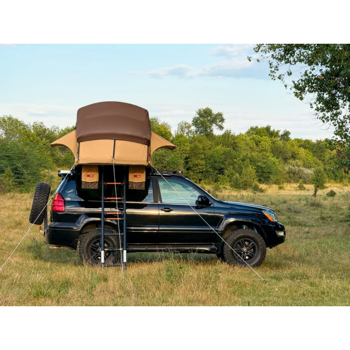 Крім якості та комфорту, плюсом намету на даху є те, що вся живність залишається на землі та не турбує Вас уночі. Також не варто забувати про фізичну безпеку, перебуваючи вище за рівень землі. З таким наметом відпочинок стає простіше, а місць для комфортного ночівлі – більше!