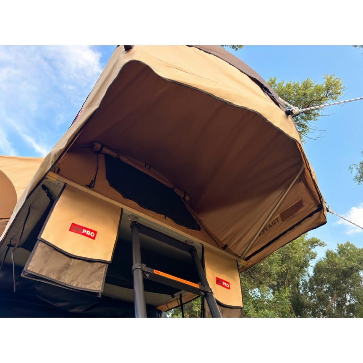 Намет на дах ORPRO Camping розкладається легко та просто, достатньо 2х хвилин. Щоб намет скласти, знадобиться стільки ж часу. У складеному стані модель ORPRO Camping зберігається в міцному ПВХ-чохлі, що захищає від гілок, каміння та бруду. Фіксується блискавкою та фастексами з кожної із сторін. Усередині намету можна зберігати подушки та постільна білизна, що звільняє додаткове місце у багажнику. Розмір у складеному вигляді складає 140х120х30 см.